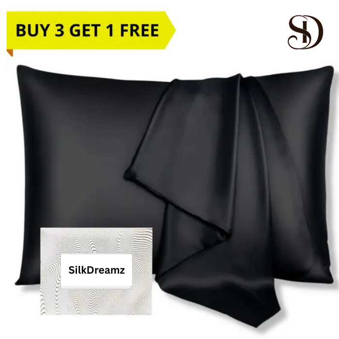 Black Queen Silk Pillowcase with Free Scrunchie & Travel Pouch