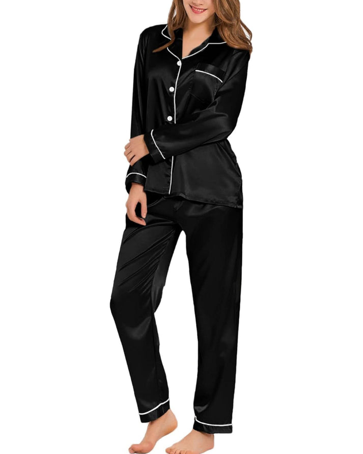 An update on a best-selling design, the Long Sleeve Silk pyjama Set with Contrast Piping will provide you with the ultimate comfort. Casual yet stylish, this set features contrast piping along the collar and front edge, pockets, and cuffs, as well as the side pant seams and hems. Ideal worn together or separately, these versatile pyjamas will look just as good worn out with your favorite sneakers as they will when worn to bed.